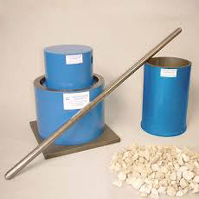 Consists of Case hardened Mild steel cylindrical container of 150mm dia + 0.5mm x 130mm to 140mm high with base plate 200 to 230mm square x 6mm thick. A plunger of 148mm + 0.5mm dia x 100 to 115mm high. All parts directly coming in to contact with the specimen during the test are made of mild steel duly case hardened. Supplied complete with tamping rod, 16mm dia x 600mm long, one end rounded.