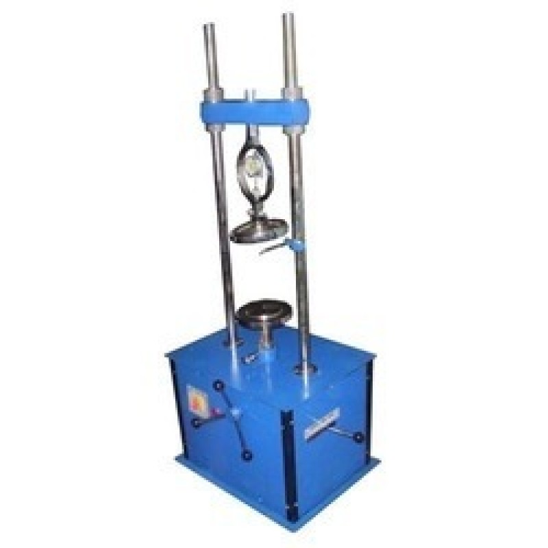 Comprises a screw operated load frame, cap.5000kg with a gear box and motor drive giving 1.25, 1.5, 2.5mm/min. Rates of strain, a pair of cone seating, adapter for proving ring, and stain dial gauge bracket. Supplied with one pair of male/female coning tools for 38mm dia samples but without ring and dial gauge. Suitable for operation on 230 V, Single Phase A.C. Supply.