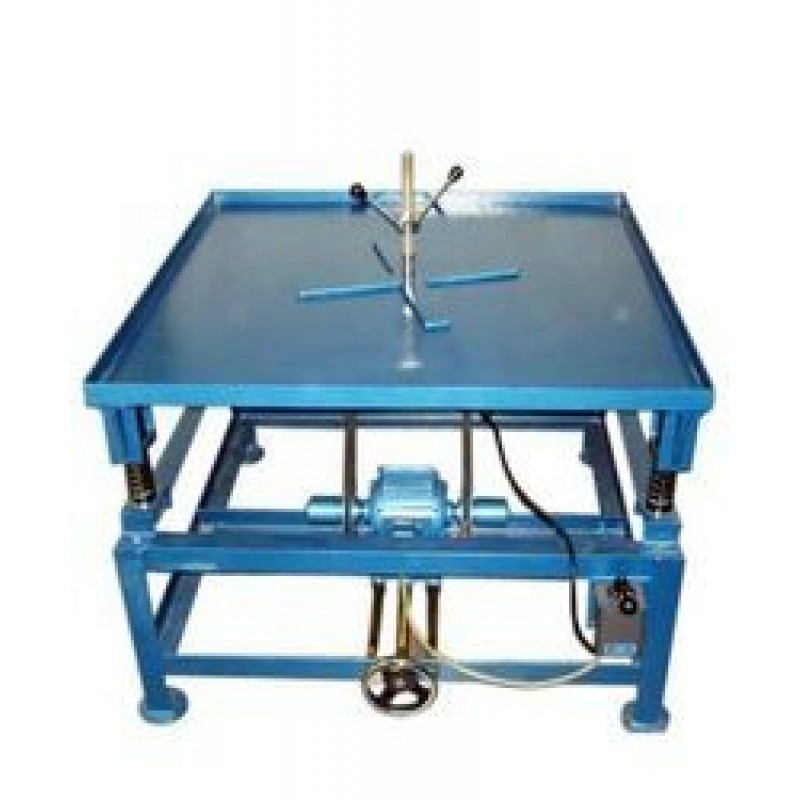 - Vibrations imparted by means of off-balance mass rotating on a shaft of vibrator clamped to the underside of table top of 50 cm x 50 cm dimension