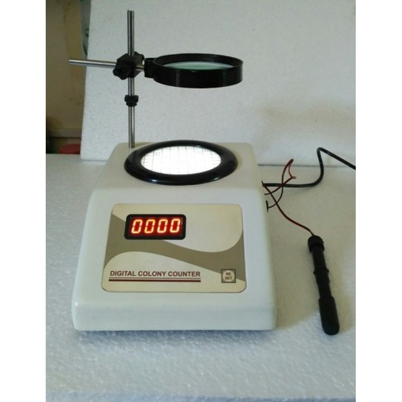 It is designed for rapid and accurate counting of bacterial and mould colonies with 3 Digit Display (999max) , Dish Size 110mm Dia and Magnification x1.7