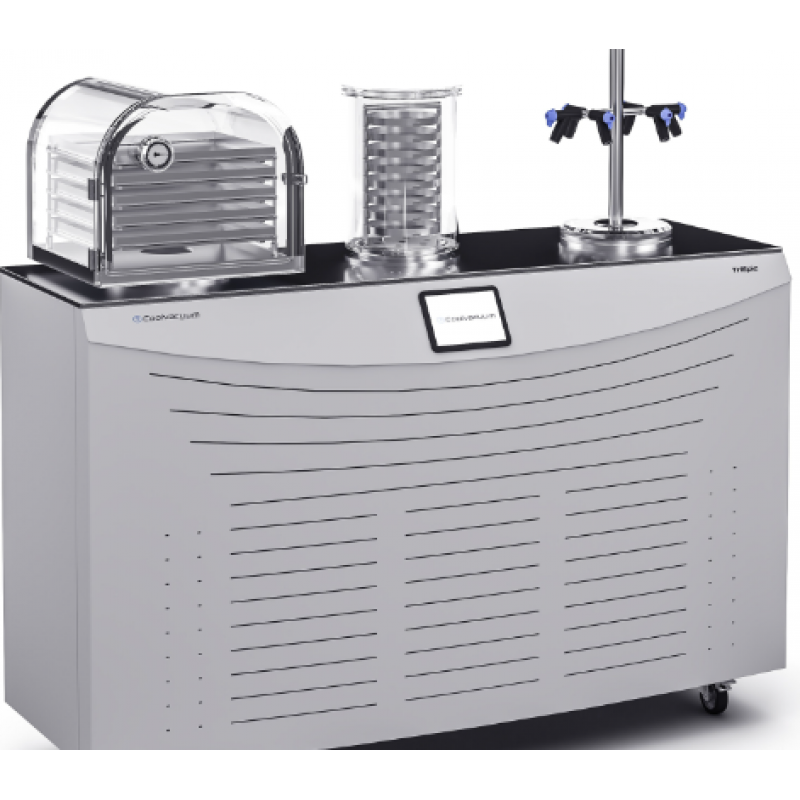 TriEpic was created to satisfy the needs of the most demanding laboratories for multiple-format or infinite freeze-drying. This disruptive concept is present in those centers where several researchers use the same freeze dryer, requiring the equipment at different times and for different cycles. The double condenser of the “INFINITY” option allows maintaining infinite freeze-drying cycles, alternating the condenser automatically when it reaches its maximum capacity
