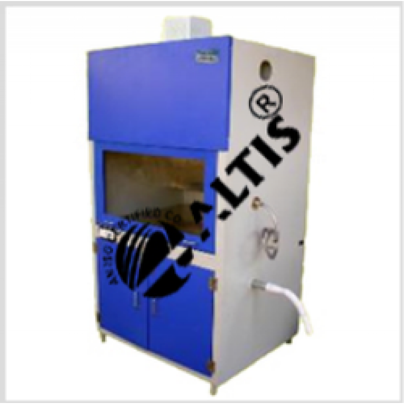 Fabricated out of thick wooden board these are designed so as to throw-out all toxic / harmful / vapours thus protecting costly instruments and the person working in the lab. Outer is finished with sunmica and inner epoxy painted. Working table top is fitted with acid alkali resistant tiles and a small wash basin with connection provide for inlet and outer of water. The front door moves vertically up and down with concealed counter balanced weight. The unit is fitted with florescent light and a gas cock for gas/ air supply. The space under the work station can be provided with storage compartments for storage purpose at extra cost (See Optional Accessories). The front facing panel is fitted with 15/5 Amp socket with switches for exhaust system and fluorescent light. To work on 220/230 volts A.C.supply.