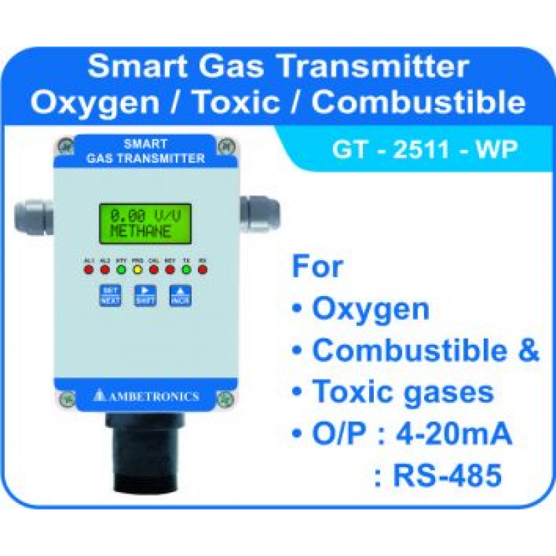 The GT-2511-series Smart Gas Detector is a microprocessor based detector broadly used as combustible gas detector or toxic gas detector and can be customized as per the requirement of gases used on site. It comes with an easy-to-read LCD and provides fast and reliable output. This gas Transmitter ensures digital LCD display of gas concentration and has sensor check provision.