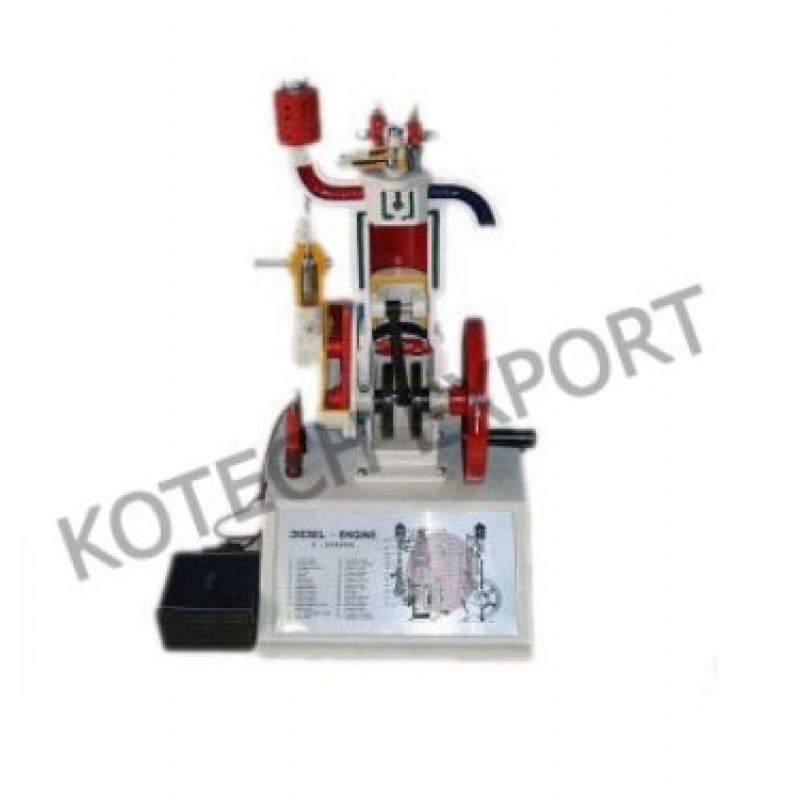 4 Stroke Deisel Engine Model Product Details: Principle: Illustrates internal structure and operating principles of an air-cooled four stroke engine. Kotech Export is specialized in manufacturing sectional working engine models including 4 Stroke Deisel Engine Model for demonstrating the functioning of fuel injection system together with hot coil starting device with all parts made in aluminum alloy and gun metal. Ignition is shown by means of a miniature bulb with carburetor or fuel supply also sectioned. It is mounted on polished wooden base with schematic diagram, with a crank handle for manual operation. In domestic market we are the leading suppliers of 4 Stroke Deisel Engine Model in Assam, Andhra Pradesh, Kerela, Karnataka, Chennai & Ahmedabad. In international market we are the leading exporters of 4 Stroke Deisel Engine Model  in Middle-East countries like Jordan, Bahrain, Turkey, Yemen and in Southeast Asian countries like Thailand, Singapore, Phillipines, Indonesia with best quality export packing from the last three decades. Specification Brands: SkillStar, SLS Color: Blue, Brown Size: Large, Medium, Small