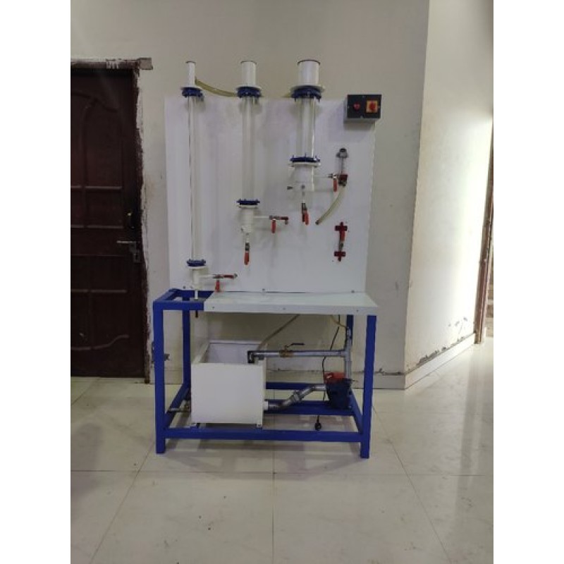 The set up is capable to study the loading and flooding characteristics. It is a packed column packed with Rasching Rings where the Air is counter currently fed to the column. Liquid holdup in the column increases the weight of column and also reduces the effective porosity of packing. This reduction in porosity decreases the gas velocity, increases the pressure drop and changes the value of mass transfer co-efficient. The water is fed from the top of the column and loading & flooding characteristic are observed on various flow rates of Air and Water. The apparatus is closed circuit type provided with suitable capacity tank, pump, necessary pipe lines walls & rotametres for water & air to measure the flow rate of fluids.
