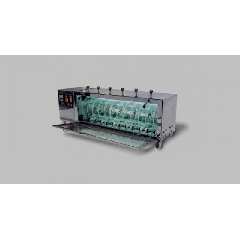 Whole machine constructed out of SS 304 material. or M.S. Powder Coated Consisting of 1/4th H.P PMDC Motor with electronic Variable speed drive. Fitted with 4" Tube light. Also fitted with 4" Ind. Fans-2 nos. for uniform circulation of hot air throughout the vessel. Suitable for 200 mm & 300 mm diameter Drum.