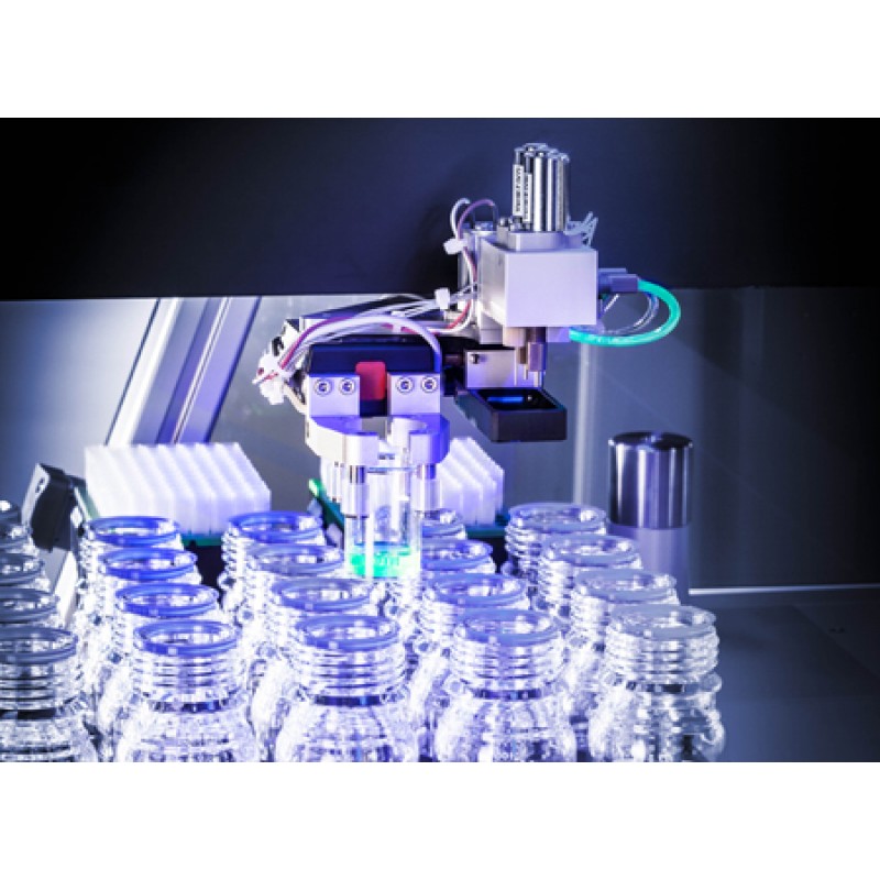 It precisely dilutes, dispenses, adds, and blends a gravimetrically controlled sample volume with an accuracy of +/-0.9 mg, where drip protection avoids the contamination of vials.