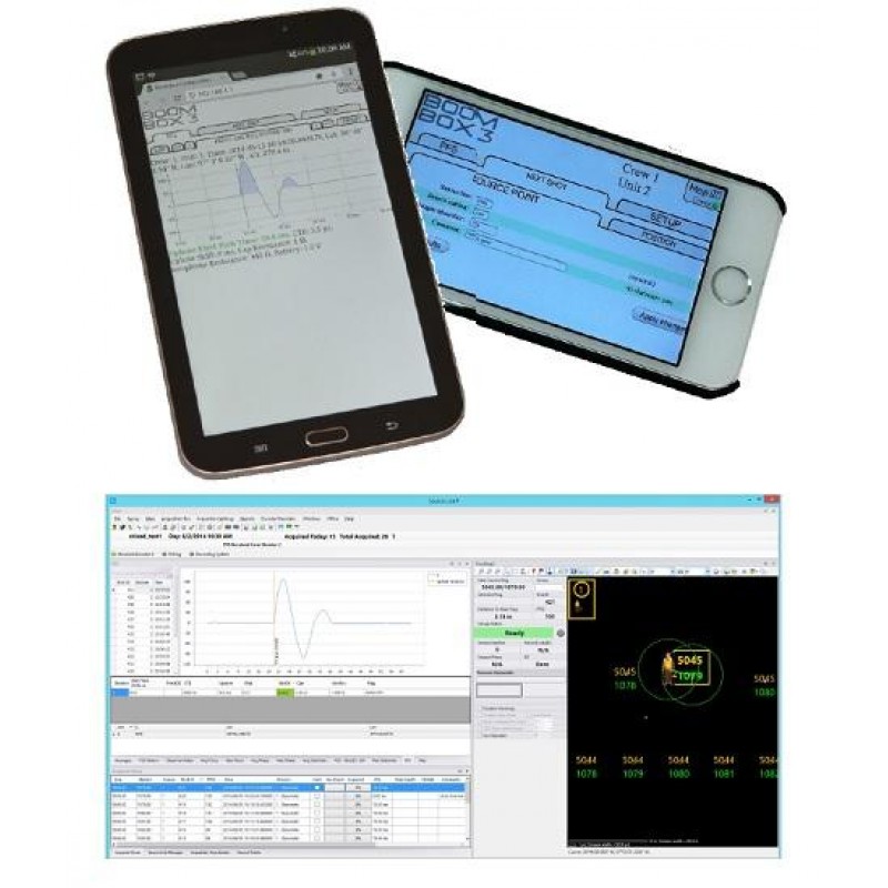 A built in Wi-Fi unit allows all of the data to be viewed and saved on a small notepad tablet or even a cell phone. This allows critical redundant storage of the shot time (micro second accuracy), up hole times, and GPS position of the shot. The Boom Box 3 Autonomous unit includes a standard Boom Box 3 plus a removable battery pack with built in GPS and an additional «Safety» fire button. This package provides a complete, compact, light weight and rugged blaster unit.