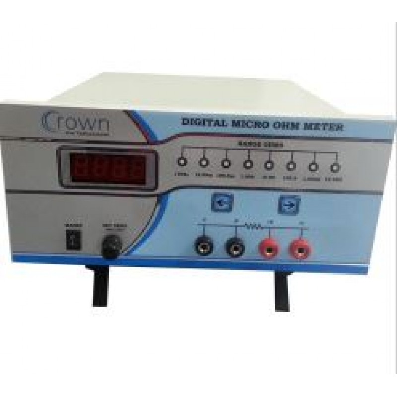 Digital Micro Ohm Meter is a compact high reliability 3 1/2. Emphasis in the design of this instrument has been to provide quick, stable and repeatable readings of resistance. The instruments uses 4 - terminal measurement so that resistance of test leads and contacts is eliminated from test results. Actual value of resistor is directly displayed on seven segment 12.5mm Display.